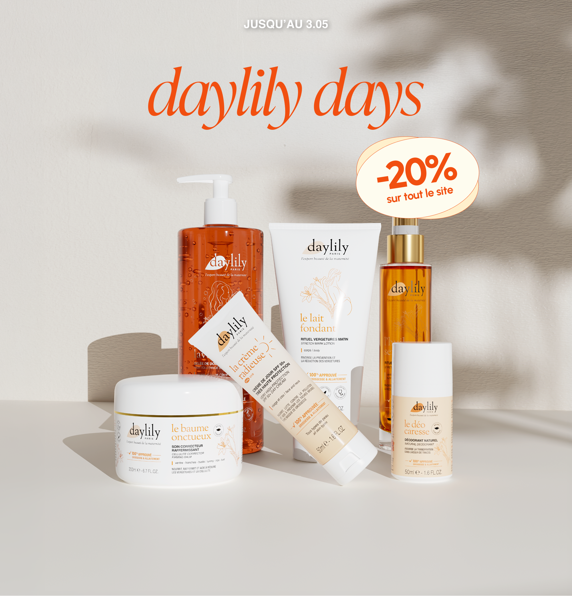 Fondée en 2015 par Audrey avec l’aide de son mari sage-femme, Daylily Paris est la promesse d’une routine beauté naturelle, 100% sûre pendant la grossesse, le post-partum et chaque jour qui suit.